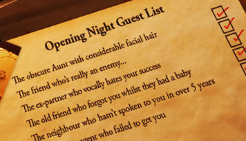 The buzz is building as First Night approaches. Suddenly obscure aunts with considerable facial hair that used to scratch you as a child, old friends you thought had forgotten you while they had babies and that new enemy you need to keep an eye on come out of the woodwork. There’s close family to consider, new and old lovers, agents, press, people who can’t stand the sight of each other: it’s a diplomatic nightmare, let alone a tiresome administrative chore.