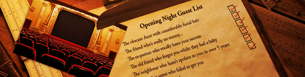The buzz is building as First Night approaches. Suddenly obscure aunts with considerable facial hair that used to scratch you as a child, old friends you thought had forgotten you while they had babies and that new enemy you need to keep an eye on come out of the woodwork. There’s close family to consider, new and old lovers, agents, press, people who can’t stand the sight of each other: it’s a diplomatic nightmare, let alone a tiresome administrative chore.